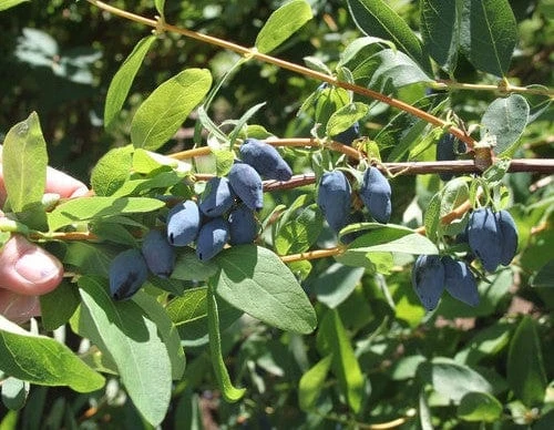 Grow a berry bush with serious flavor—not just a boring hedge! Yezberry MAXIE™ Japanese haskap (aka honeyberry) honors breeder Dr. Maxine Thompson and gives cold region and maritime gardeners an easy treat in earliest summer. With a tangy flavor that’s like a raspberry with a bit of earthy blackberry, when the berries are dark blue through-and-through is the time to enjoy them. Yezberry is a newer category of honeyberry from an exclusively Japanese subspecies from Hokkaido (formerly called Yez Island), and these late-blooming varieties match up reliably with each other. Plan to buy them in sets for heavier yields!